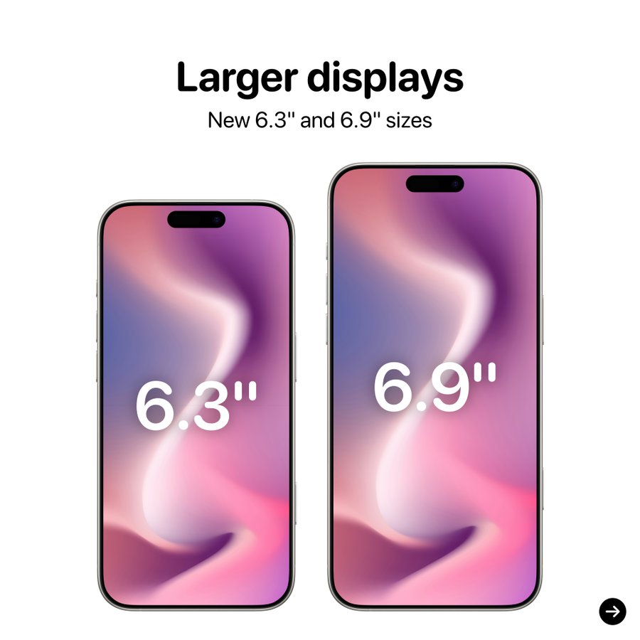 The iPhone 16 Pro models are expected to feature larger 6.3″ and 6.9″ displays. These displays could also feature brighter MLA OLED panels, which would improve brightness and power consumption. Thinner bezels are also expected